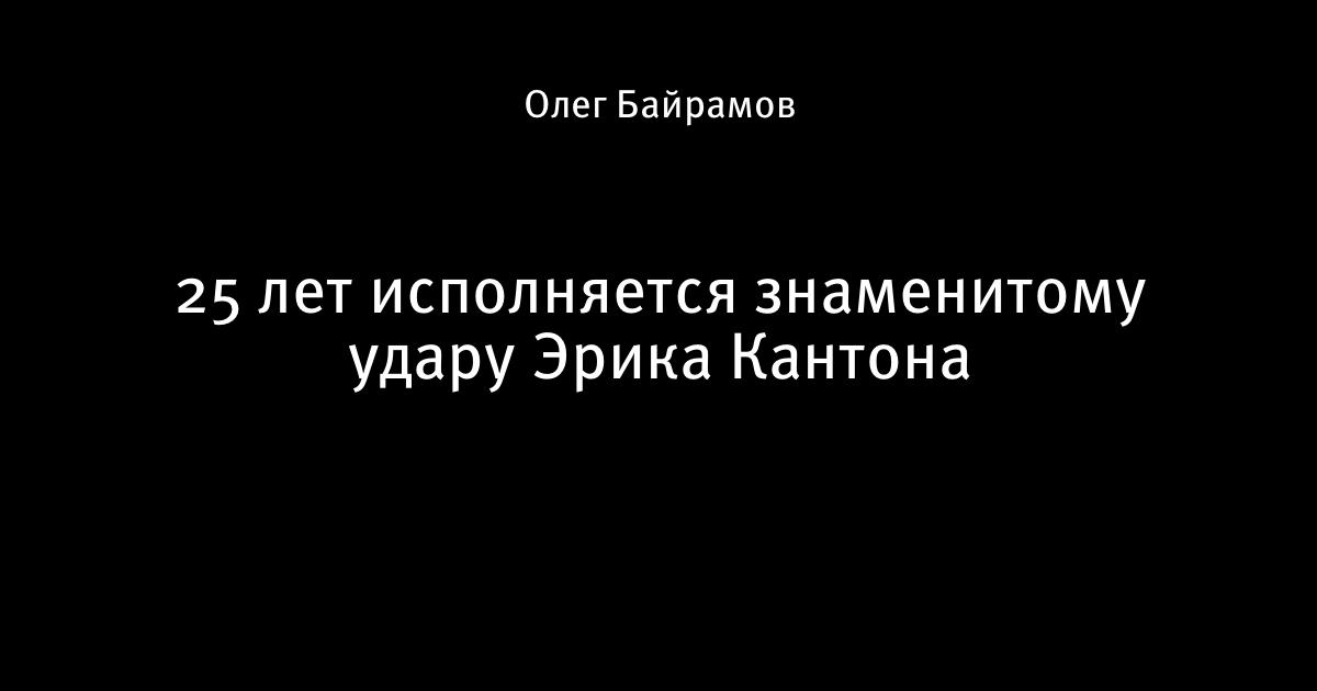 26 января 2020, 13:16 25 лет исполняется знаменитому удару Эрика Кантона Этот пост написан пользователем Sports.ru, начать писать может каждый болельщик (сделать это можно здесь). Автор Олег Байрамов