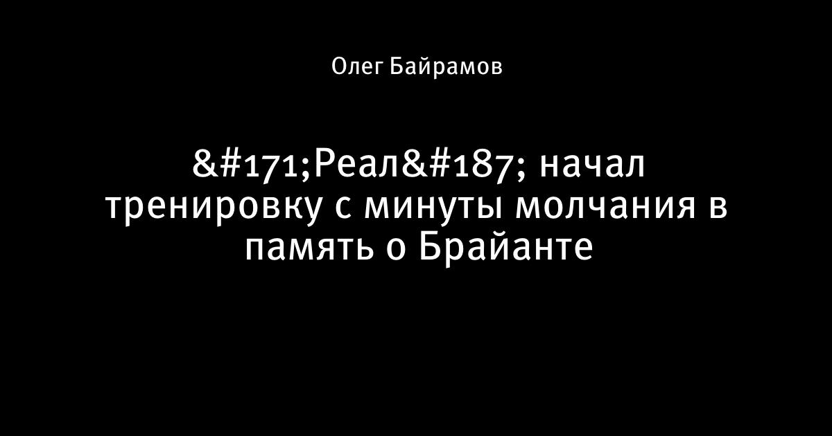 27 января 2020, 14:56 «Реал» начал тренировку с минуты молчания в память о Брайанте Этот пост написан пользователем Sports.ru, начать писать может каждый болельщик (сделать это можно здесь). Автор Олег Байрамов