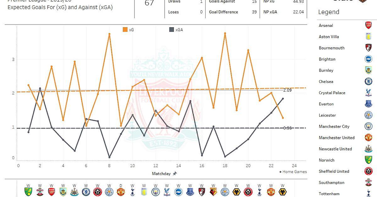 xG статистика «Ливерпуля» в АПЛ сезона 2019/20