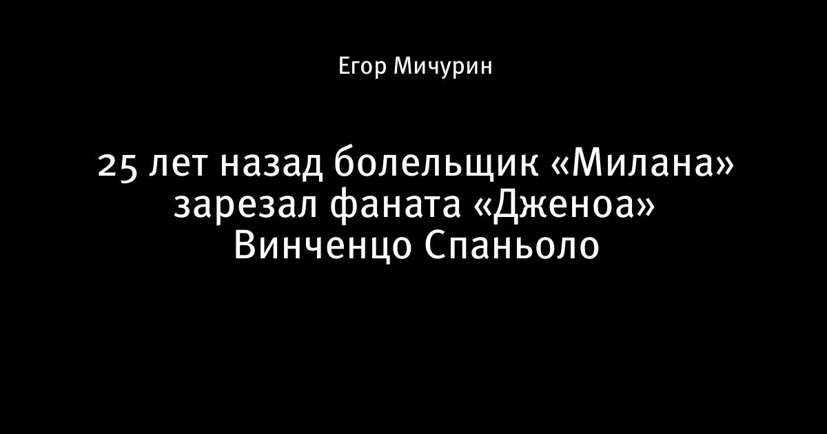25 лет назад болельщик «Милана» зарезал фаната «Дженоа» Винченцо Спаньоло