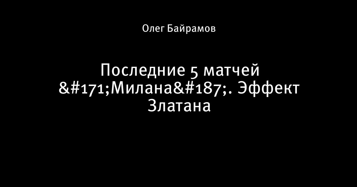30 января 2020, 01:53 Последние 5 матчей «Милана». Эффект Златана 🦁 Этот пост написан пользователем Sports.ru, начать писать может каждый болельщик (сделать это можно здесь). Автор Олег Байрамов