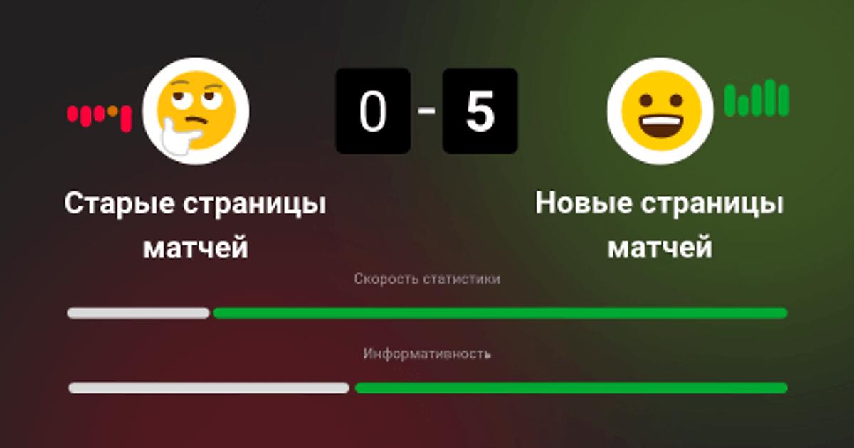 Мы полностью переписали страницу, изменили организацию работы статистических данных, сделали так, чтобы задачи от идеи до реализации проходили в несколько раз быстрее. Технологии, которые мы используем на новых страницах матчей, станут основой для изменения всего сайта.