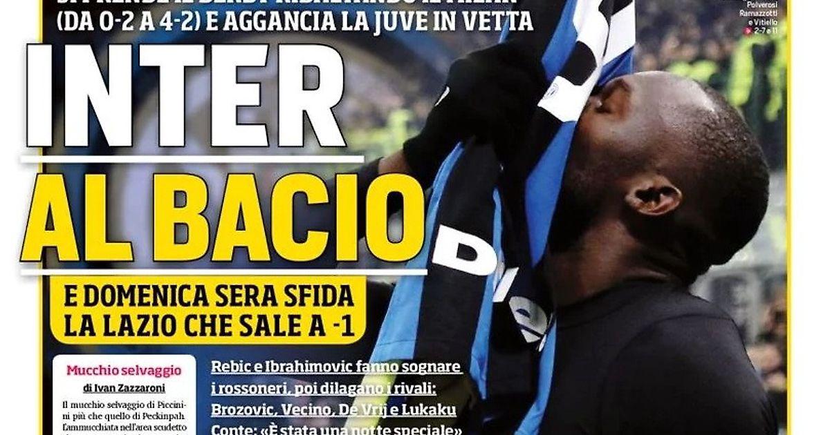 Камбэк «Интера» в Миланском Дерби, позволивший догнать «Юве», победа «Лацио» над «Пармой», поражение «Наполи» от «Лечче», а также смена тренера в «СПАЛ» – в утреннем обзоре заголовков итальянских спортивных изданий в блоге «В гостях у Кальчо».
