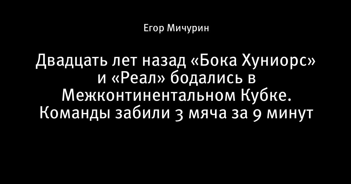 Двадцать лет назад «Бока Хуниорс» и «Реал» бодались в Межконтинентальном Кубке. Команды забили 3 мяча за 9 минут
