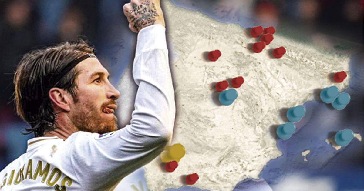 В воскресенье на «Эль-Садар» капитан мадридского «Реала», поразив ворота соперников, приколол очередную булавку на своей карте забитых мячей: Рамос забил почти на каждом стадионе в Ла Лиге.