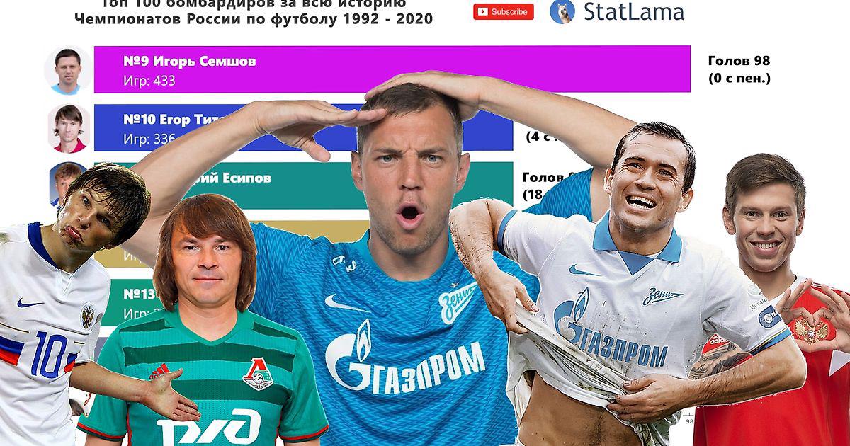 Топ 100 Бомбардиров за всю Историю Чемпионатов России по Футболу 1992-2020