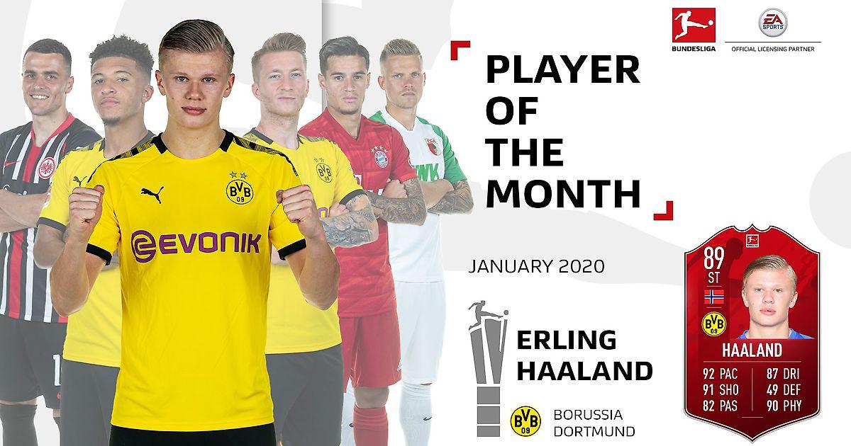 19-летний нападающий "Боруссии Дортмунд" Эрлинга Холанд признан лучшим игроком января в Бундеслиге. Он появился в команде в зимнее трансферное окно и в первых же двух играх забил 5 мячей. На это ему потребовалось всего 59 минут.