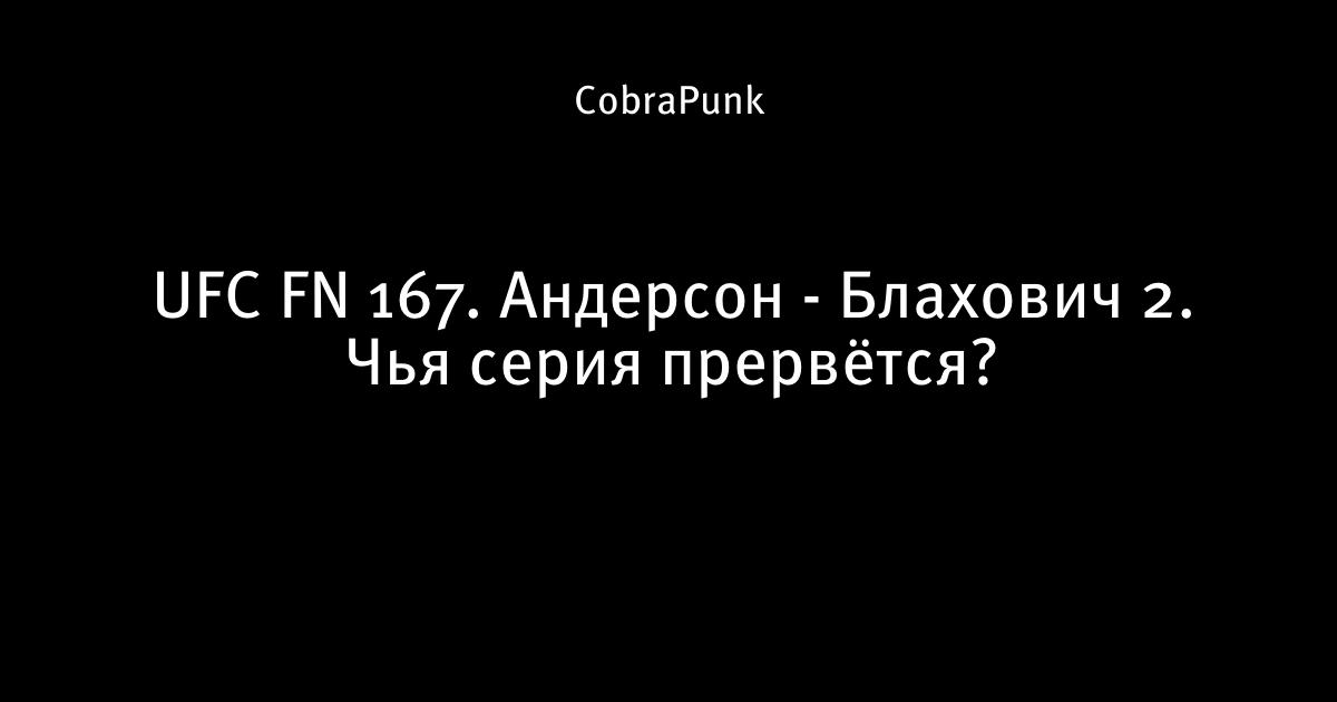 Даже не знаю, заметят ли вообще UFC FN 167 в эти выходные. Споры по поводу Джонс – Рейес затмили дебютную победу МакГрегора в полусреднем весе, а тут всего лишь какие-то Андерсон и Блахович решили встретиться ещё раз. Впервые парни встречались почти пять лет назад, когда Скриптонит выстрелил своим «Домом с нормальными явлениями», а Барселона овладела ушастым кубком в пятый раз. Изменилось практически всё, кроме чемпиона в полутяжёлом весе. Бойцы идут на победных сериях, занимают пятое и шестое места в рейтинге, и сегодняшний турнир станет для одного камнем в ботинке.