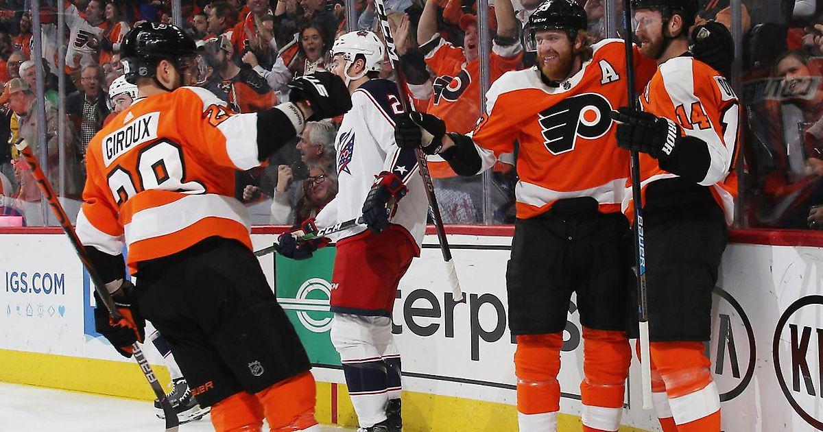"Филадельфия Флайерс"-"Колумбус Блю Джакетс" 5:1.Трэвис Конечны набрал 3 очка (1+2),Клод Жиру и Джоэль Фараби отдали по 2 результативные передачи,Картер Харт отразил 28 бросков.