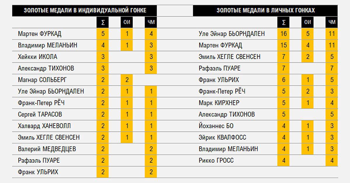 Благодаря победе в Антхольце — кстати, всего третьей на этой трассе в его карьере — Фуркад стал первым четырехкратным чемпионом мира в индивидуальной гонке и сравнялся с Уле-Эйнаром Бьорндаленом по общему числу личных золотых медалей чемпионатов мира.