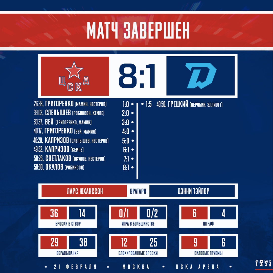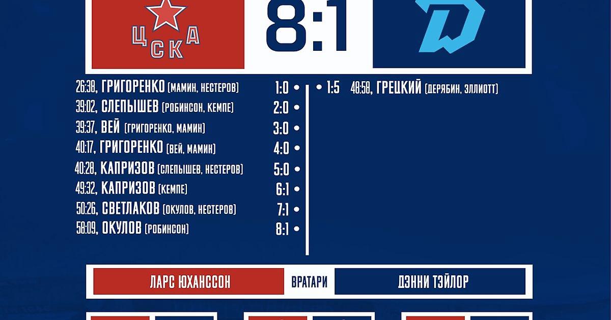 ПХК ЦСКА забросил восемь шайб в ворота минского «Динамо»