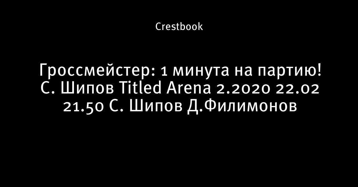 Гроссмейстер: 1 минута на партию! С. Шипов Titled Arena 2.2020 ⏰ 22.02 21.50 🎤 С. Шипов Д.Филимонов