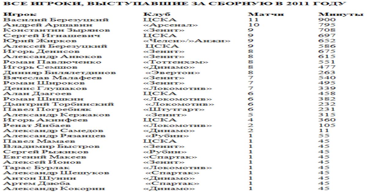 - В 2011 году в 11 матчах за сборную сыграли 33 футболиста. Единственным, кто отметился во всех матчах, стал Василий Березуцкий. А 11 игроков появились на поле всего однажды.