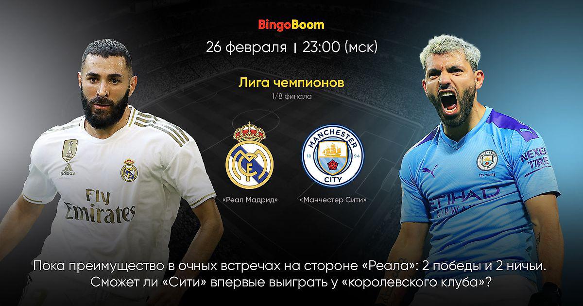 “Реал Мадрид” и “Манчестер Сити” имеют практически равные шансы на победу в ⅛ турнира Лиги чемпионов, разница в коэффициентах составляет менее пункта. Аналитики букмекерской компании BingoBoom отдают небольшое предпочтение коллективу Хосепа Гвардиолы с коэффициентом 2.38.