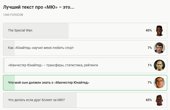 Победил пользователь TaR, написавший отличный текст о том, что делать, если ваш друг болеет за «МЮ». Он совсем немного опередил Артема Самодурова с постом об Аароне Уан-Биссаке.