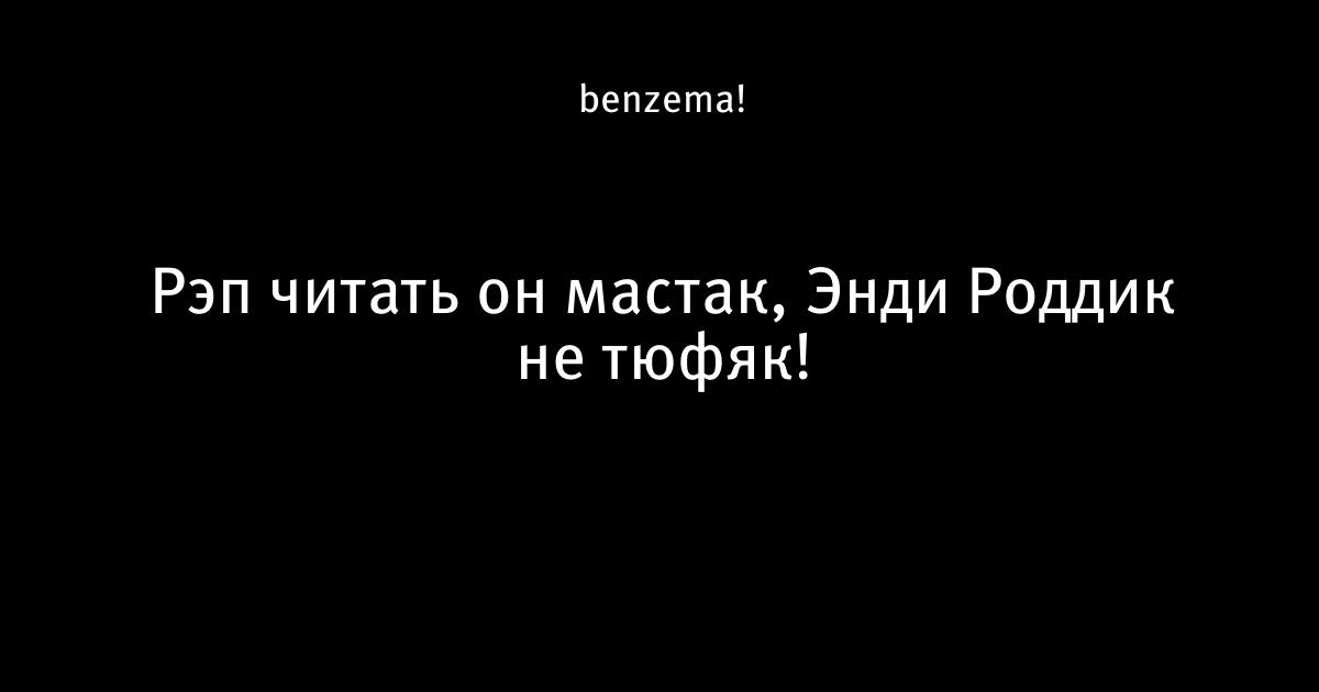 2 января 2012, 01:34 Рэп читать он мастак, Энди Роддик не тюфяк! Автор benzema! Этот пост опубликован в блоге на Трибуне Sports.ru. Присоединяйтесь к крупнейшему сообществу спортивных болельщиков! Другие посты блога Вы это видели? Энди Роддик
