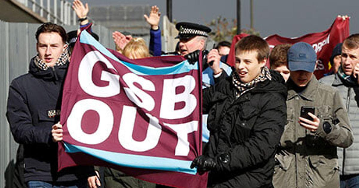 Город буквально обклеен стикерами GSB OUT [GSB – первые буквы фамилий руководства: Gold, Sullivan, Brady]. Мой друг, болеющий за «Ливерпуль», недавно на полдня оказался проездом в Лондоне, и ему повезло попасть на домашнюю игру «молотков» с «Брайтоном». Вопрос о стикере GSB OUT был первым, который он прислал мне в мессенджере.