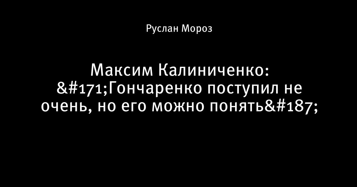 Максим Калиниченко: «Гончаренко поступил не очень, но его можно понять»