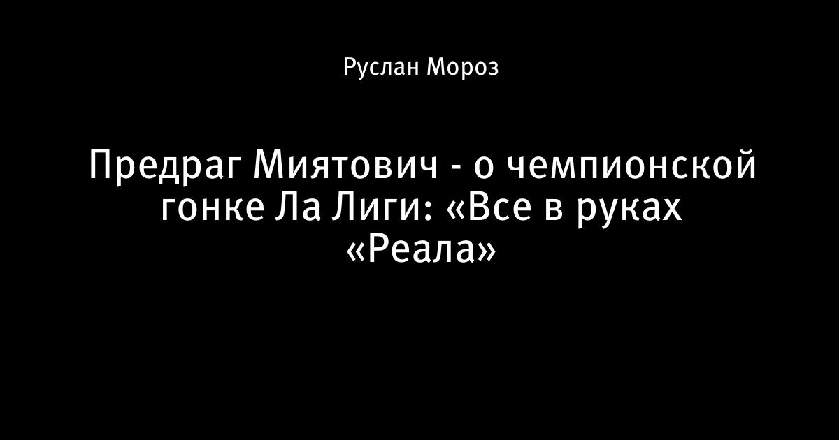 Предраг Миятович - о чемпионской гонке Ла Лиги: «Все в руках «Реала»