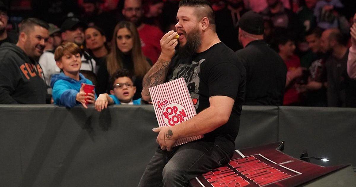 Тем не менее, Роллинс продолжал сохранять инициативу, даже фэлкон эрроу провел. Добрые пару минут Форд терпел, в итоге уйдя от бэк суплекса Роллинса и отправив в матч свежего напарника. Докинс принялся уничтожать обоих противников, отсыпал им дропкиков, флэпджек, клоузлайнов в углу, Сет бульдог получил. Командная работа подарила чемпионам возможность удержания лишь до 2, а от следующей Роллинс ушел, провел Монтезу слингблэйд и отправил в матч Мерфи. Тут же вместе претенденты провели связку из колена и суперкика Анджело, а Форд съел двойной суперкик в воздухе. Для победы всей этой красоты не хватило. От попытки бомбы Анджело отбился, отправив Бадди катапультой в угол. Сет принял у него тэг, но влетел прямо в джеб Анджело. Тэг Монтезу. Фрогсплэш Роллинс встретил коленями с удержанием до 2. Стомп не задался, но право ведения боя незаметно перешло Мерфи, так что Форд получил связку из бомбы в угол и кика в затылок, а затем и колени с угла от австралийца, но Докинс разбил удержание. «Мессия» выкинул его за пределы ринга, попытавшись провести суисайд дайв, но влетел прямо в экслоудер. Мерфи с Фордом тем временем оказались на третьем канате. Суперкик у второго не прошел, так что он передал «слепой» тэг Анджело, чемпионы зашли на суперплекс вдвоем, к ним присоединился Роллинс, и все это вылилось в Tower of Doom. Все лежали на ринге без сил, а толпа оживилась, потому что из толпы к рингу пошел Кевин Оуэнс с попкорном. Он уселся на комментаторский стол, обратил на себя внимание Роллинса и швырнул попкорн в лицо «Мессии». Только Сет собрался атаковать, но со спины на него налетел Докинс. Мерфи попытался что-то противопоставить Street Profits, но его дайв они пресекли, отправив бомбой в баррикаду. В четырехугольнике прошла коронная связка из спайнбастера и фрогсплэша, и у нас титульная защита. Сет разозлился и принялся кричать на Бадди, обвиняя того в поражении и не заметил Кевина, который подошел совсем близко, шарахнул Станнер и ушел, посыпав Мерфи попкорном.