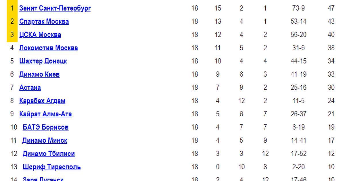 Зенит Санкт-Петербург 13 (10) - (5) 5 Динамо Минск