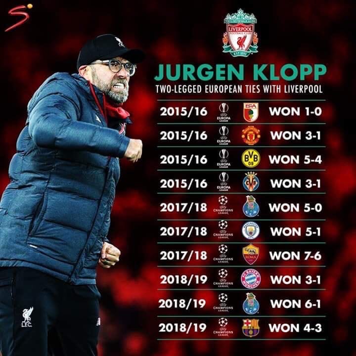🛑 Клопп никогда не проигрывал ответный матч еврокубков с «Ливерпулем»