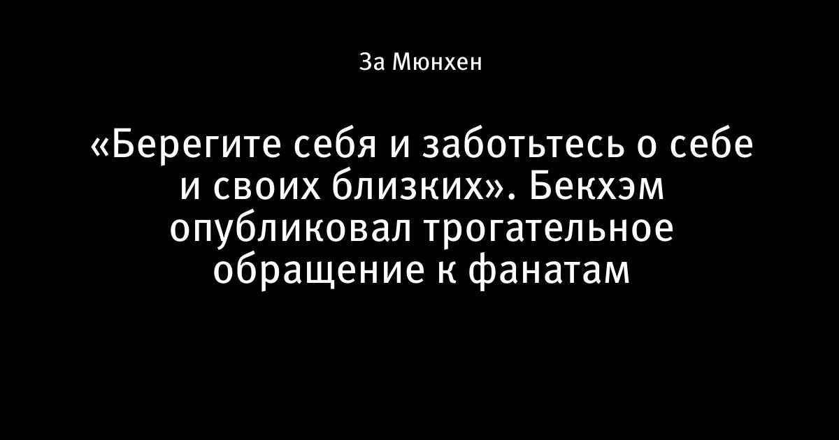 В эти моменты спорт отходит на второй план. Мы все должны прислушиваться к советам экспертов и поступать правильно. Берегите себя и заботьтесь о себе и своих близких», — написал Бекхэм.