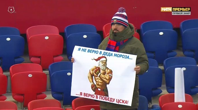 Но как обладатель абонемента, заплативший деньги, довольствоваться встречей с "Уфой" и пропускать "Зенит" - это не очень справедливо. Еще одно странное решение клуб принял непостредственно перед встречей с "Уфой", отказавшись от контактов с прессой. То есть пускать болельщиков (пусть и не на все сектора) в условиях пандемии - это нормально, а выходить к прессе игрокам - нет? Л - логика. Судя по баннеру, болельщики ЦСКА пока не переживают по поводу коронавируса.
