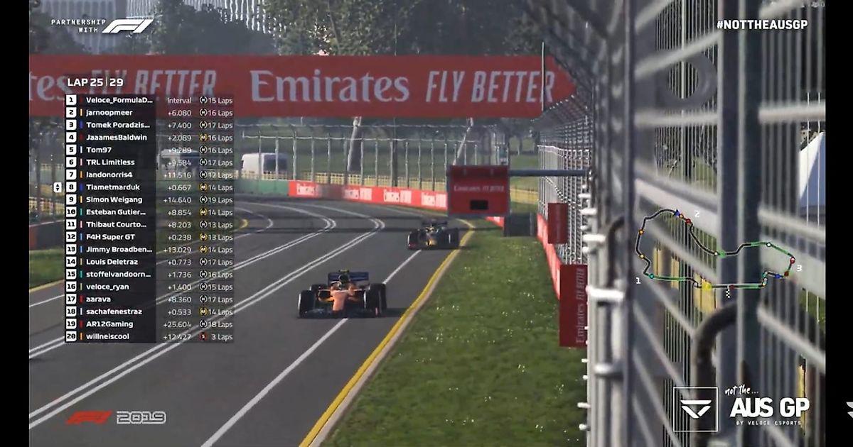 Виртуальная гонка «not AUS F1 RACE» прошла в несколько сокращенном виде в отличии от настоящего Гран-При (только один сегмент квалификации и гонка в 29 кругов). И началась она с проблем у Ландо Норриса. В устранение неполадок ему помогали чуть ли не всем миром. А волновались за начало «гонки» больше 25 тысячи человек. И дальше все продолжалось с криками Ландо из-за сбоев.