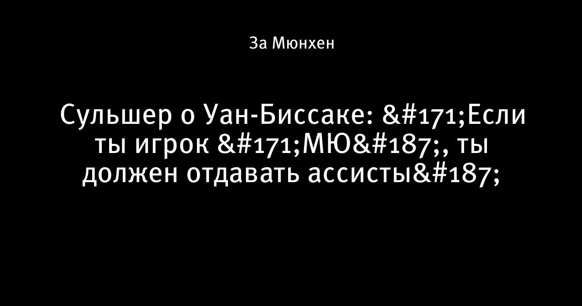Сульшер о Уан-Биссаке: «Если ты игрок «МЮ», ты должен отдавать ассисты»