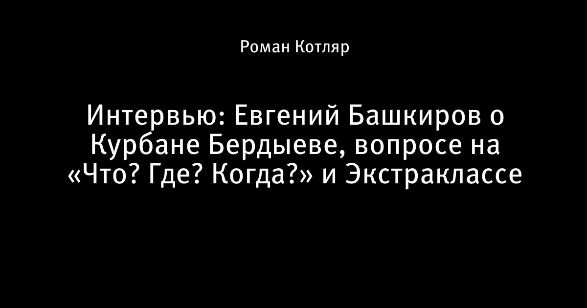 Интервью: Евгений Башкиров о Курбане Бердыеве, вопросе на «Что? Где? Когда?» и Экстраклассе