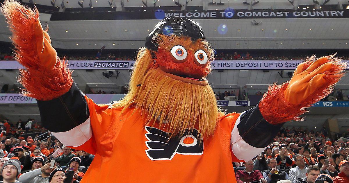Он может в шутку ударить и даже измазать тортом. Это легендарный маскот «Филадельфии» Гритти!