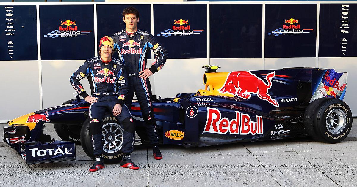 «Ред Булл» пропустил первые тесты в Валенсии, а появился только в Хересе. Роб Маршалл, Эдриан Ньюи, Себастьян Феттель, Марк Уэббер, Кристиан Хорнер и Питер Продрому стоят на фото рядом со своим детищем.