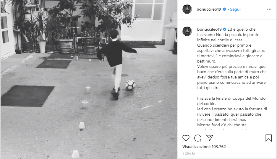 Леонардо Бонуччи «поблагодарил» (если можно, конечно, так выразиться) карантин в своем инстаграм. Благодря ему, Лео проводит время со своим сыноим за игрой в футбол. Он очень привязан к детям — Лоренцо и Маттео. Вот слова Лео:
