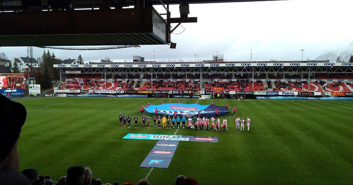 Отправляясь на матч, я вбил адрес арены в навигатор и не прогадал: найти стадион, просто вклинившись в толпу болельщиков, направляющихся на игру, я бы не смог: никакой толпы попросту не было. Впрочем, я бы удивился, если бы матч «Тромсё» – «Одд» вызвал бы ажиотаж у местного населения.