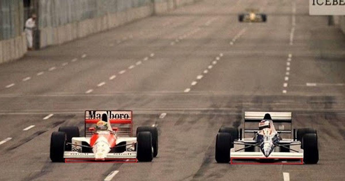 У меня тоже такой есть. Это контратака Жана Алези на Айртона Сенну на Гран-при США 1990-го в Финиксе: вчерашний французкий дебютант гнал в лидерах на середняке «Тиррелле», Волшебник ехал за вторым титулом – и атаковал соперника в борьбе за победу.