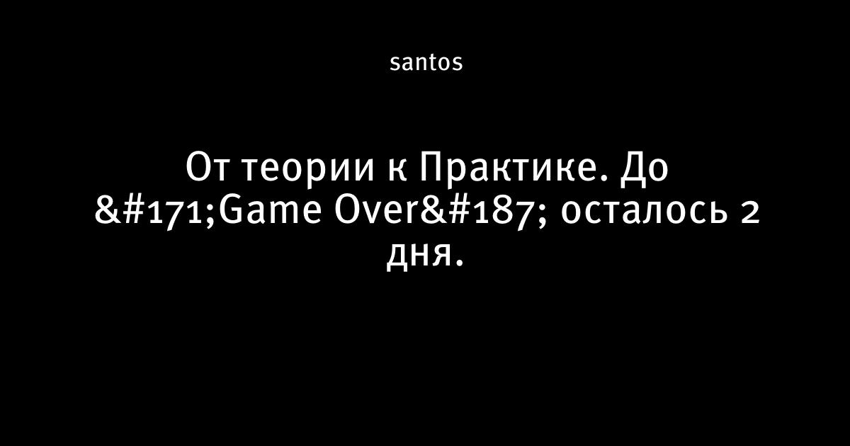 От теории к Практике. До «Game Over» осталось 2 дня.