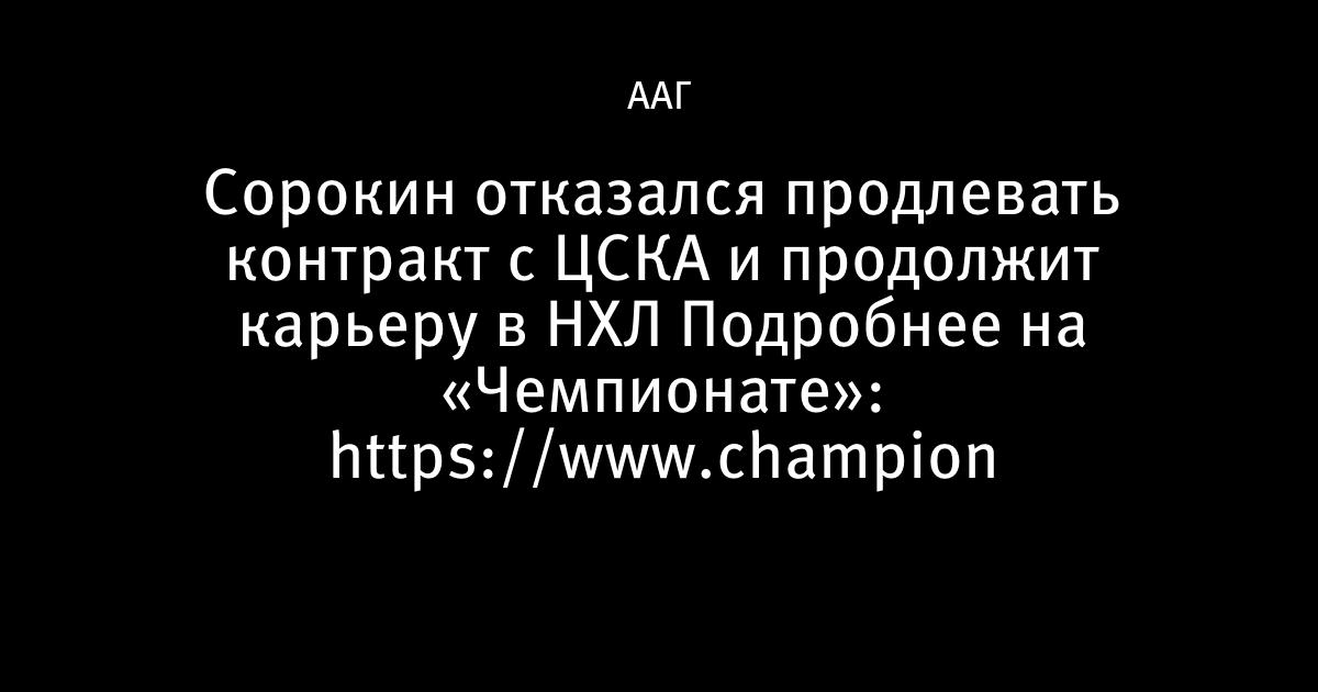 Сорокин отказался продлевать контракт с ЦСКА и продолжит карьеру в НХЛ Подробнее на «Чемпионате»: https://www.champion