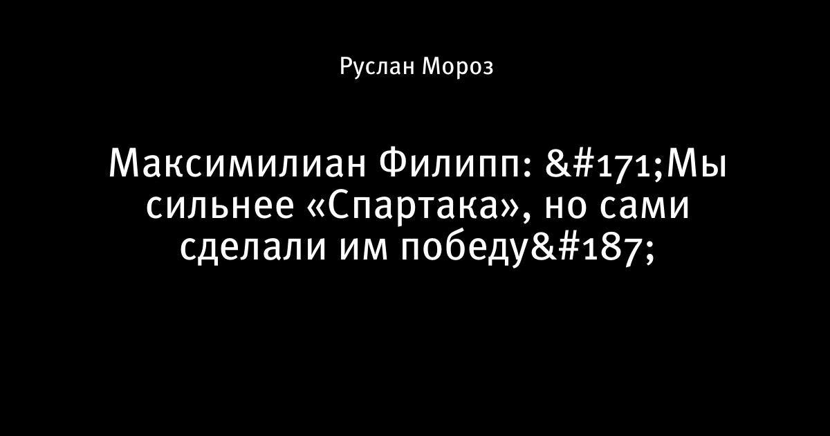 Максимилиан Филипп: «Мы сильнее «Спартака», но сами сделали им победу»