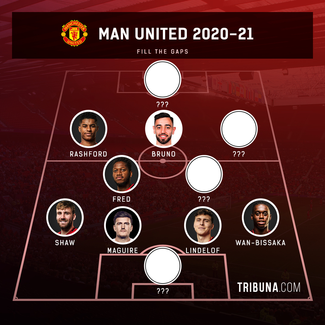 «Манчестер Юнайтед» постоянно говорит о желании усилить несколько позиций. Вот пустые места в расстановке — это самые обсуждаемые позиции для усиления. Напишите, в комментариях, кто на них должен играть?