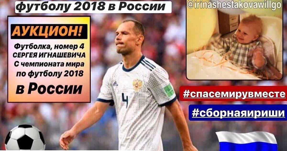 — Я — экс-футболист сборной России, и я выставляю на благотворительный аукцион свою футболку с последнего чемпионата мира, который состоялся у нас в стране, в России, в 2018 году. Аукцион для сбора средств на лечение Ире Шестаковой. Друзья, давайте вместе поможем девочке выздороветь, — сказал Игнашевич в своем видеообращении к поклонникам.