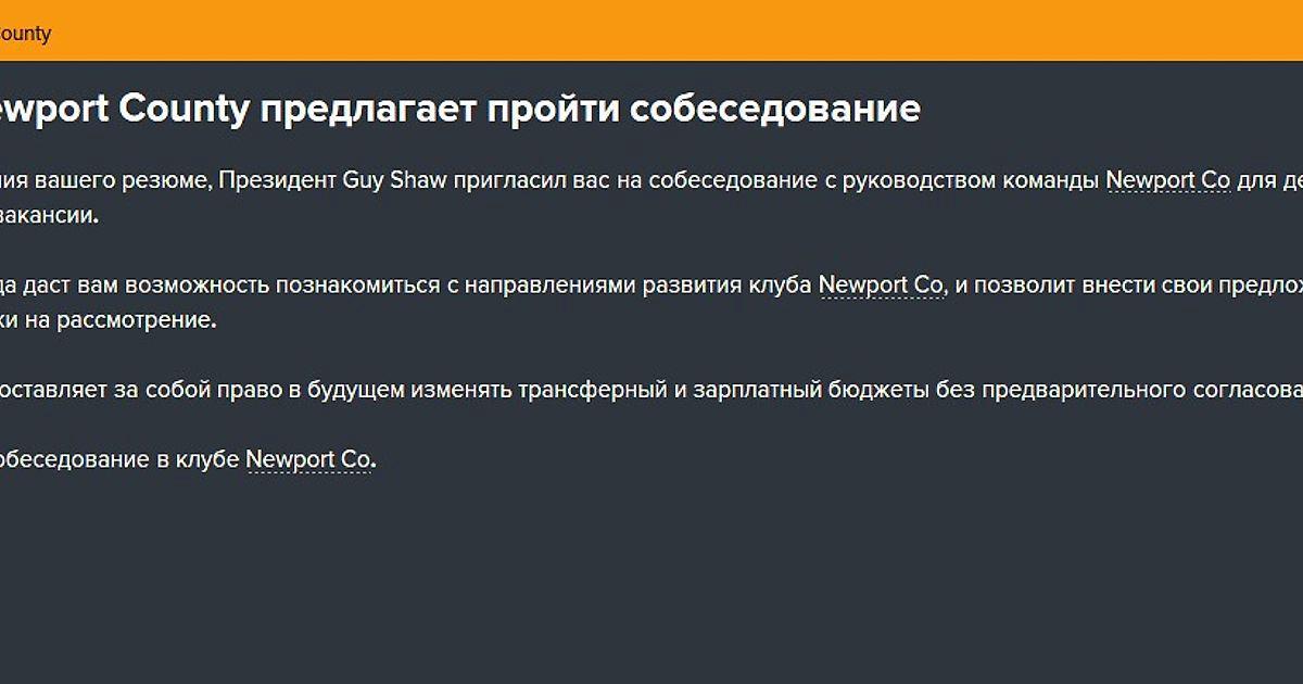 Завершив свои трансферные похождения, я понял, что совершенно забыл о последнем рубеже, и это сейчас - самое слабое звено в команде. Приступив к поискам голкипера, я смотрел исключительно внутренний рынок, благо там было из кого выбрать. Но перед этим произошло два интересных события: 1) Я получил приглашение на собеседование в клуб Newport County, который играет в Skybet League 2 в Англии ( 4 дивизион по силе) 2) После этих переговоров, новый президент Далькурда выразил обеспокоенность этим фактом, и предложил встретиться и обсудить новые контракт и мои пожелания: