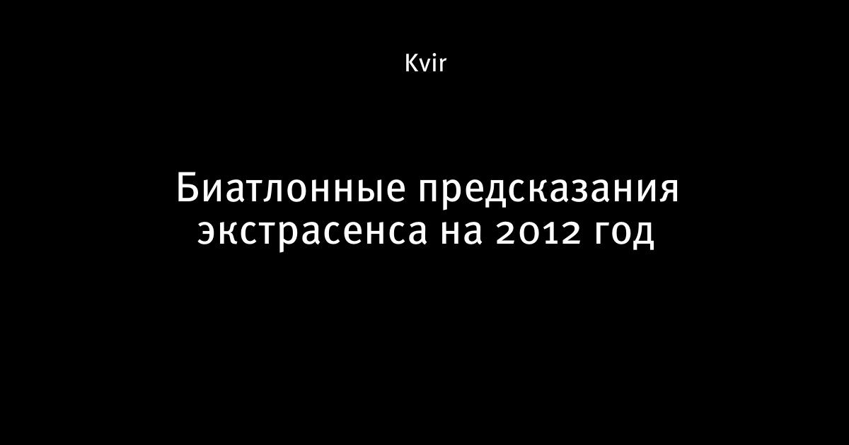 За несколько дней до наступления Нового 2012 года мне удалось встретиться с одной из известных экстрасенсов России. Не буду сейчас называть ее имени, но в популярной тематической передаче на телеканале ТНТ она принимала участие. Мне конечно же хотелось узнать у нее о том, что ждет меня в новом году, о политике, погоде и курсе доллара, но оказалось, что моя собеседница является ярой фанаткой биатлона! И тут меня понесло…