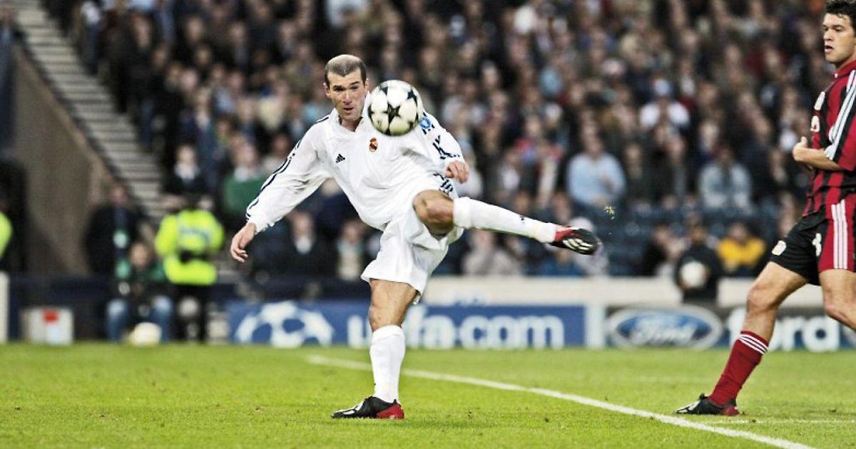 Перед перерывом в финале Лиги чемпионов УЕФА с "Байером" при счете 1:1 Роберто Карлос выдал с левого фланга не самый удобный навес на край штрафной. Выжидая и вымеряя возможность для выстрела, Зидан подстроил тело и в изящном пируэте нанес хлесткий удар своей менее рабочей левой. У вратаря немцев Йорга Бутта едва ли бы шанс остановить этот мяч.