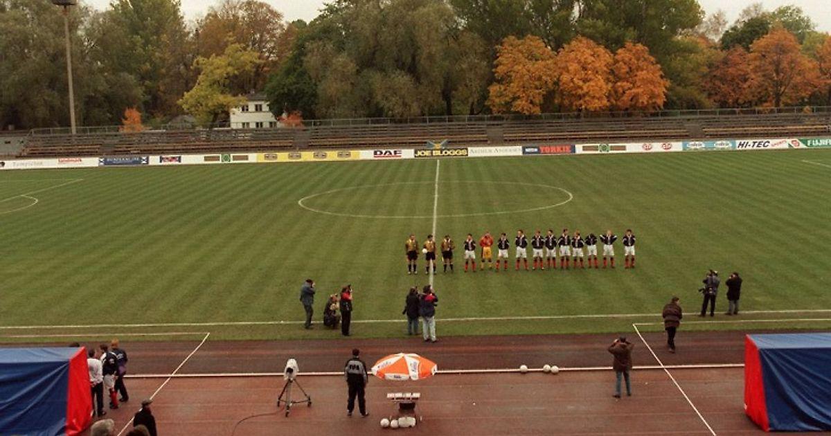 Фото выше – не кадр с предматчевой разминки команд, а начало матча сборных Эстонии и Шотландии. Точнее, только Шотландии – хозяева на матч не приехали. В 15:00 по местному времени Билли Додс отпасовал Джону Коллинзу, тот сделал несколько шагов в сторону ворот и услышал финальный свисток судьи Мирослава Радомана.