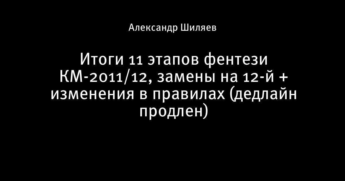 Итоги 11 этапов фентези КМ-2011/12, замены на 12-й + изменения в правилах (дедлайн продлен)