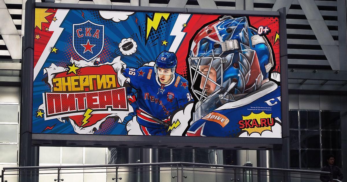 Запустить необычную кампанию в сдержанном и интеллигентном Санкт-Петербурге, да еще и в одном из старейших клубов страны? Можно, если обладать определенной долей смелости. ХК СКА решил использовать технику комиксов со слоганом «Энергия Питера». Согласитесь, достаточно смело внедрять подобную эстетику, когда накануне отгремели марвеловские страсти по «Мстителям». Можно и негатив получить. Дескать, не наше это, американское. Но в СКА рискнули и не прогадали.