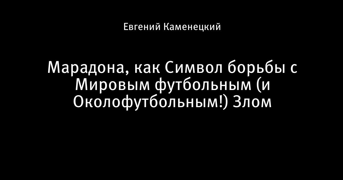 Марадона, как Символ борьбы с Мировым футбольным (и Околофутбольным!) Злом