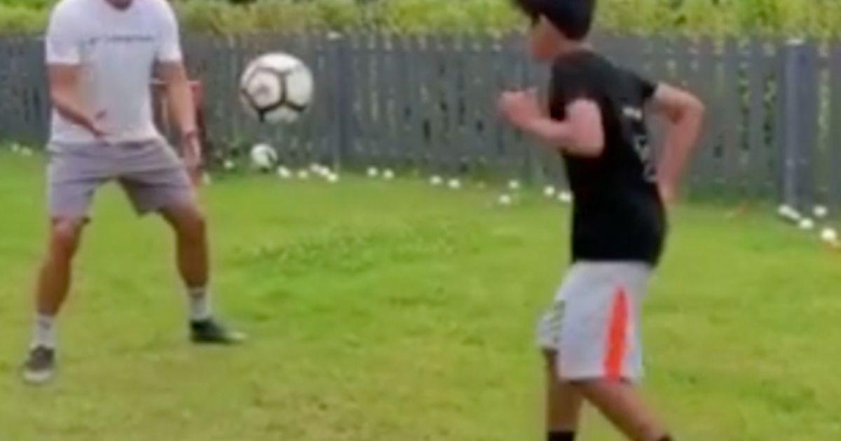 Форвард «Ювентуса» Криштиану Роналду показал, как тренируется с сыном во время самоизоляции из-за пандемии коронавируса.
