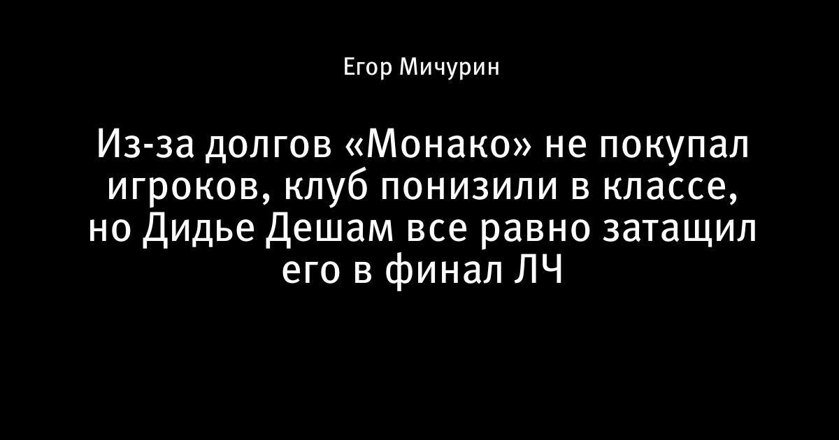 Из-за долгов «Монако» не покупал игроков, клуб понизили в классе, но Дидье Дешам все равно затащил его в финал ЛЧ